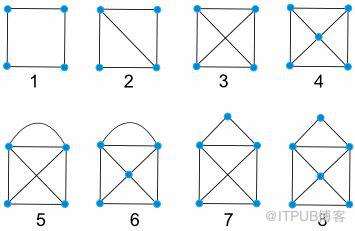 这也是有名的“一笔画”问题。聪明的读者你可以试试如何用一笔画完成这几个图: