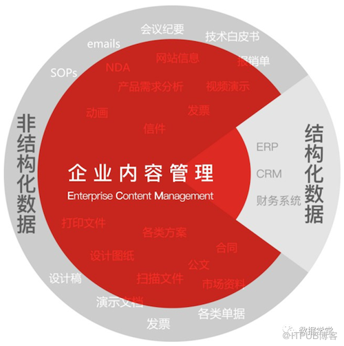 非结构化数据管理在企业实践中主要体现为 ECM 企业内容管理,其解决方案是通过企业内容管理系统来得到各项非结构化数据管理 工作的具体落地实施。