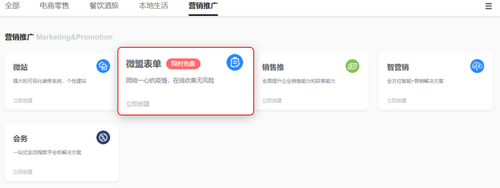 操作步骤:创建店铺,在营销推广中选择微盟表单。