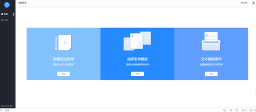 微盟表单提供了“创建空白表单”、“选择表单模版”和“文本编辑表单”三种类型。