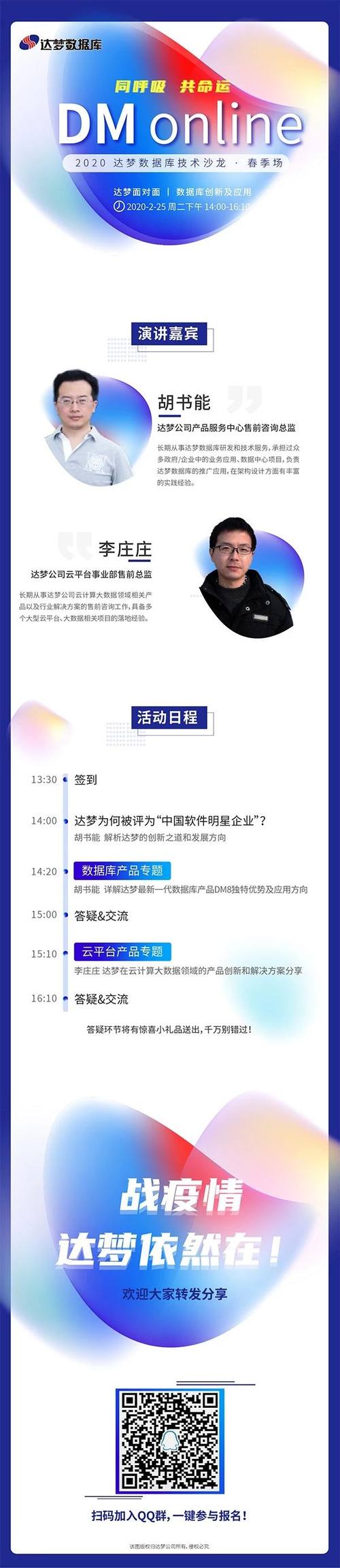此次DM online技术沙龙邀请到达梦公司产品服务中心和云平台事业部两位深耕行业多年的技术精英,为大家带来最新的数据库产品详解与应用分享,与各位嘉宾一同探讨数据库的发展方向和应用落地。