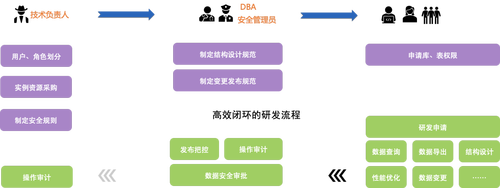 传统的人为数据安全管控方案有两种,集权管理和分权管理。使用集权管理方案需要在业务代码使用账号之外,创建独立的读写账号、只读账号,只给与DBA、运维等特定的人员,但是这种方案的弊端在于,对于有些需要快速响应查看数据进行决策的场景,繁琐的步骤将直接影响研发效率,且运维人员直接访问数据库存在直接变更产生诸如删库跑路的风险!