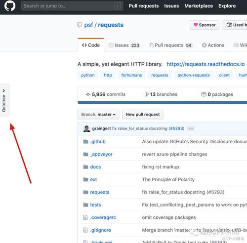 Octotree 插件就很好的解决了上面的问题,当你安装好这个插件后,浏览 GitHub 上某个项目的代码时,左侧会有个按钮,如下图: