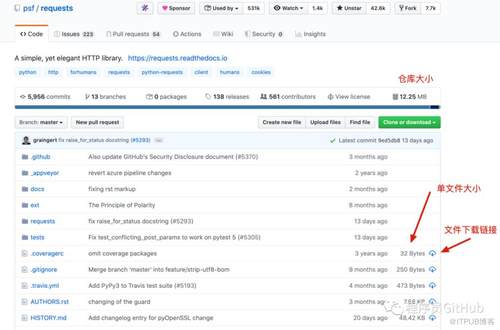 这个问题可以通过 Enhanced GitHub 插件解决。它可以显示仓库大小,每个文件的大小,下载链接和复制文件内容的选项。