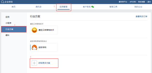 step2:应用管理-->行业方案-->获取更多方案