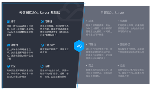 腾讯云数据库SQL Server通过减少数据库节点,利用大量云服务器、数据云盘资源带来的规模化效益,大幅节省企业成本。据悉,云数据库SQL Server在价格上是云服务自建数据库的开销的五分之一,与IDC自建服务器搭建数据库的开销相比,仅为二十分之一。同时,还为用户免费提供实例的本地和云上备份空间,免除了用户研发、管理备份系统以及购买备份存储空间的成本。
