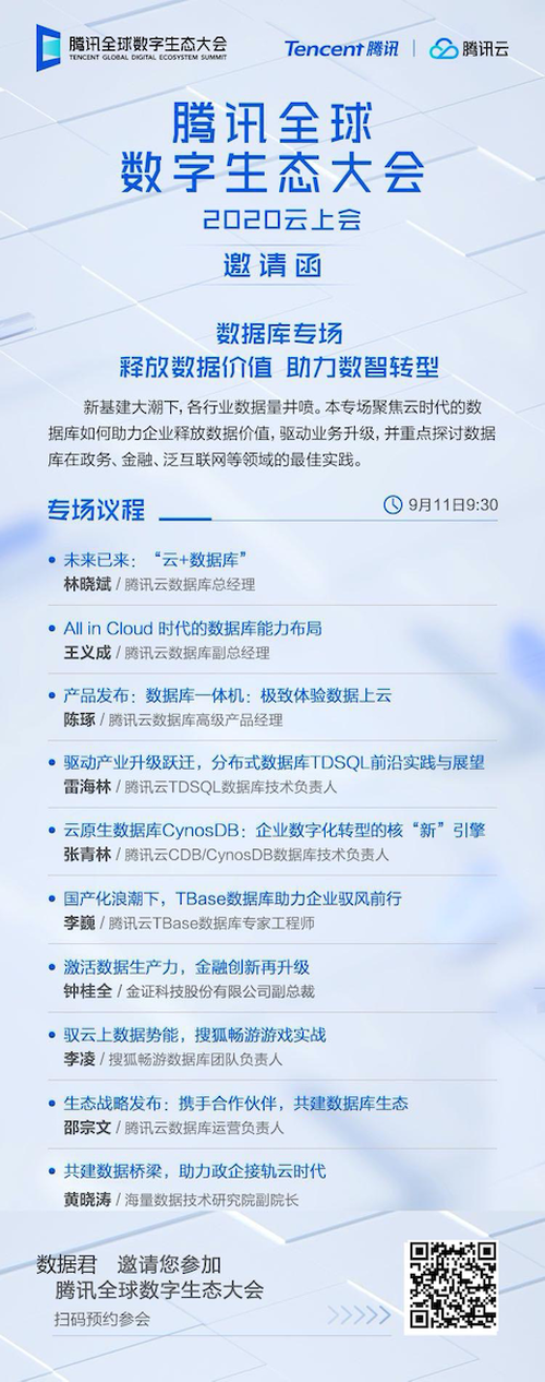 本次腾讯全球数字生态大会的数据库专场完整议题如下: