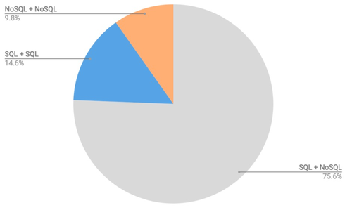 数据显示,75.6%的多数据库类型组合使用了SQL和NoSQL数据库。这进一步说明,对于许多企业来说,并不能一刀切。