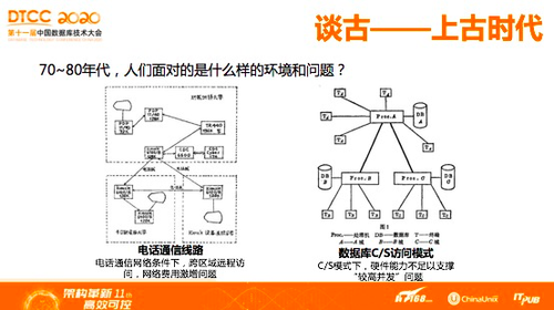 七八十年代,计算机应用刚刚兴起,那时,现在熟悉的中间件还不存在,用户稍微多一点,数据库就无法承担并发能力,在C/S模式下,硬件能力不足以支撑“较高并发”,因此,单机数据库或者集中式数据库没有办法满足性能要求。
