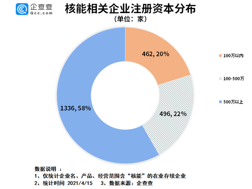 从注册资本分布来看,企查查数据显示,我国核能相关企业中有58%的企业注册资本在500万之上,注册资本在100-500万之间的占比22%,注册资本在100万以内的企业则占比20%。