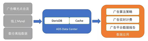 经过大量调研,DorisDB比较契合广告数据中心的整体要求。基于DorisDB本身高效的查询能力,支持高QPS的特性,可以为广告的算法策略、广告实时计费、广告平台实时的数据报告提供一体化服务。