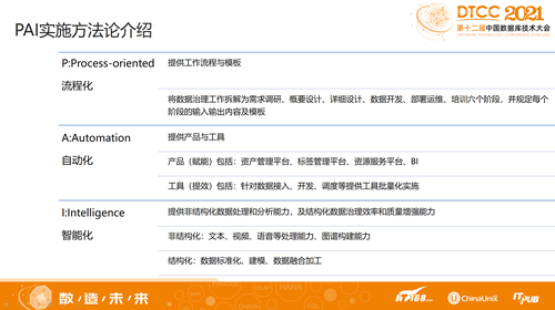 “PAI”实施方法论,即流程化(process-oriented)、自动化(automation)、智能化(intelligence)三化论,以逐步递进方式不断提升数据治理能力,为政府和企业后续的数据赋能业务及数据催生业务创新打下坚实基础。