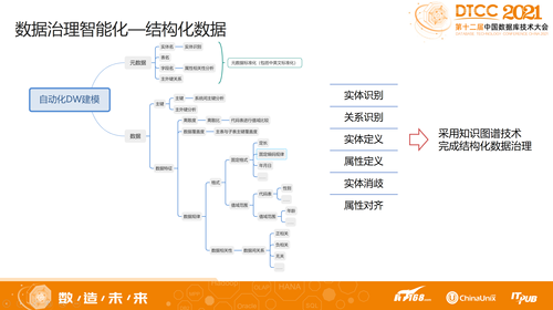3.数据融合加工智能化,在数据加工层面,目前流程跟建模流程类似依赖于模型人员调研各业务系统数据,通过mapping文档进行数据整合规则的整理,尤其是主数据加工过程,比如企业工商信息的主数据合并问题,它的外部数据来源和内部业务系统对应的这些字段之前全靠人工梳理出来,并且在加工之前要人工看上几十条上百条数据,分析数据情况。此过程与知识图谱构建过程中的实体消歧和属性对齐理念不谋而合,百分点科技也在通过智能化手段在进行主数据加工智能化研究,逐步减轻模型人员工作实现数据加工智能化。