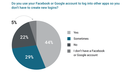 在是否开放个人数据时人们优先考虑便利性:全球近三分之二(73%)的人有时会使用他们的Facebook或谷歌账户来登录其他应用程序,以避免创建新的登录。