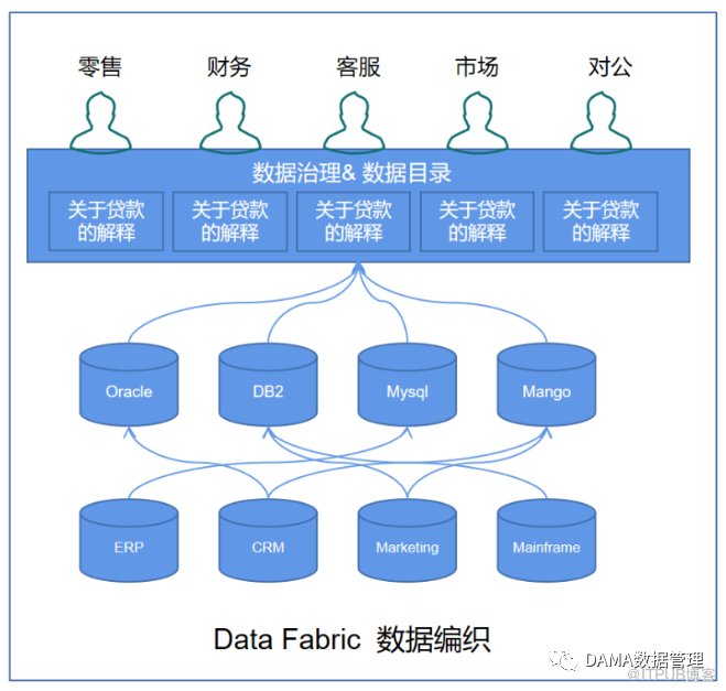 数据编织 (Data Fabric) 把数据从生产到利用的过程分为3个层次: