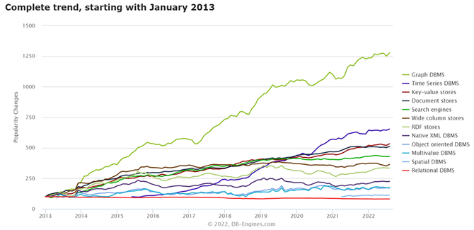 图 | 各类数据库近十年来热度变化(来源:DB-Engines.com)