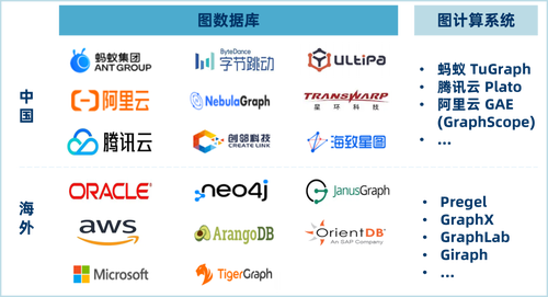 图数据库领域不仅有互联网/公有云厂商(如蚂蚁、腾讯、 AWS 、 Microsoft Azure 等),还有一众图计算领域垂直企业(如 Neo4j 、 TigerGraph 、创邻科技、欧若数网等)、传统数据库厂商( Oracle 、 IBM 等)也已经入局。