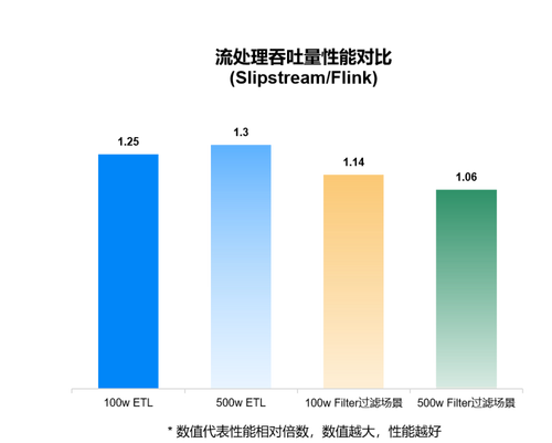 Slipstream是星环科技自主研发的实时流计算引擎,在吞吐量性能方面,ETL测试项100万、500万数据量数据处理吞吐量,Slipstream比Flink性能分别提升25%和30%。Filter过滤场景100万、500万数据量Slipstream比Flink性能提升14%和6%。