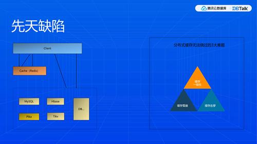 得到的结论是:他们可能一样做不好,因为这条路就是错的,没有人能做得好。果然,行业内友商和我们一样放弃了这条路,在Pika、HBase、MySQL、TiKV加上Redis的独立缓存方式,是做不好的。