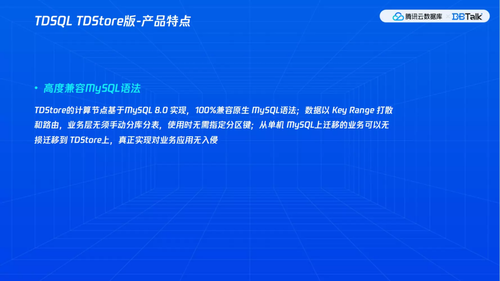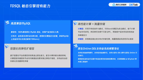 面向金融级数据库应用肯定要保持数据的强一致性,为了面对大规模数据以及异地容灾、合规性要求,这款产品TDSQL具有非常高的可扩展性、金融级的高可用。所有的这些特性在腾讯内部一直在进行不断更新和迭代,为新敏态引擎打下坚实的基础。