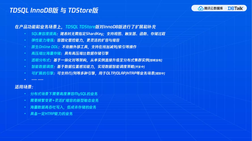 基于刚才的诸多对比可以看出,我们不断地从客户的使用反馈中深挖为何我们需要做一个更新的引擎,以更好地解决客户的痛点,而腾讯新敏态的引擎TDStore可以更为契合地为客户解决哪些问题。