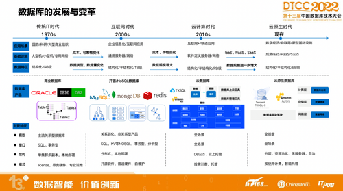 简单回顾一下整个数据库的发展与变革,相信绝大多数DBA都经历过这样的时代。起初是传统IT时代,当时企业广泛使用商业数据库,包括Oracle、IBM的DB2,以及SQL Server。随着互联网的发展,这类数据库的弊端逐渐凸显,过于依赖硬件,价格昂贵等问题层出不穷。
