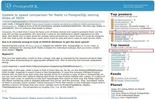瀚高名列PG国际社区Blog系统贡献团队之列