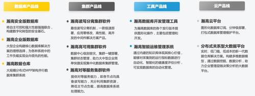 瀚高拥有四大产品线:数据库、集群、工具和云产品。