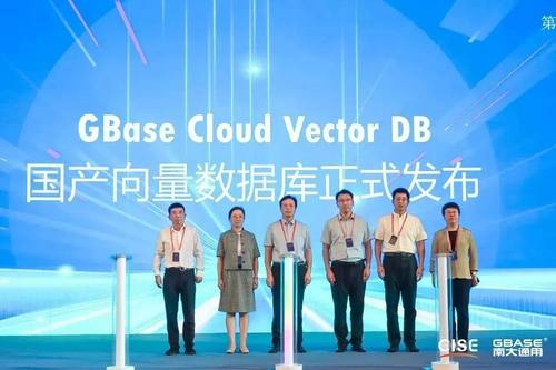 会上,GBASE南大通用重磅发布国产向量数据库GBase Cloud Vector DB,由南大通用董事长丁明峰联合陈波副区长、崔同湘副主任、杨冬梅总经济师、李战怀主任、宋宇副总裁主理了发布仪式。