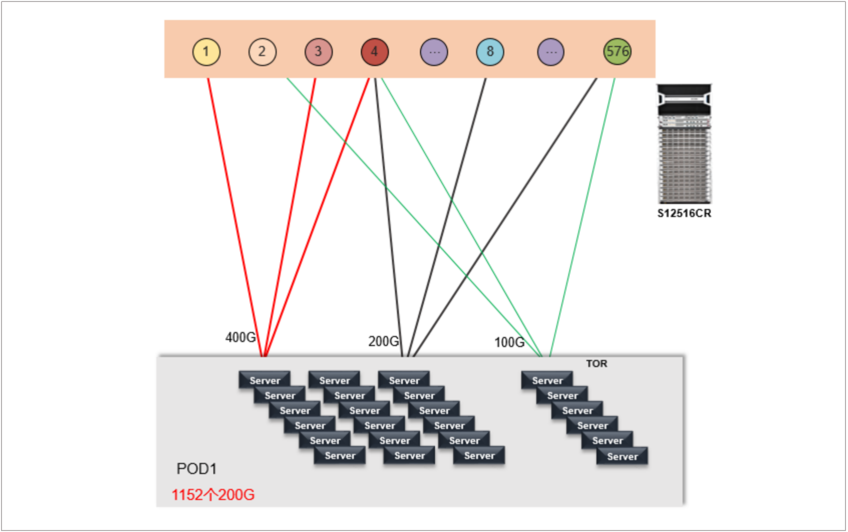 框盒组网:而对于有着更大规模组网的需求,新华三数据中心网络提供框盒无损架构。同样以GPU服务器100G/200G/400G网卡速率为例,若采用新华三旗舰数据中心框式产品S12500CR系列构建ToR/Leaf/Spine三层组网架构,单台S12516CR作为Spine并且保证ToR上下行收敛比满足1:1要求。在服务器接入速率400G下单PoD可以支持千台服务器,集群理论最大可以提供近59台400G服务器规模接入;若采用200G速率则可以提供单PoD支持两千台服务器,集群提供近118万台服务器规模接入;若采用100G速率接入集群最大可以提供超200万台服务器规模接入。