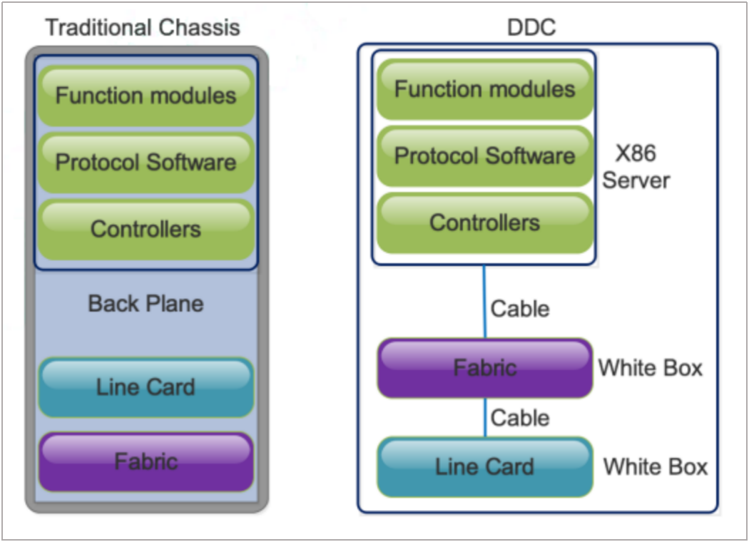 对于数据中心交换机而言,不论是传统的机框式或者盒式交换机随着端口速率从 100G 提升到 400G。不仅要面临功耗问题,同样要解决盒式组网的Hash精度以及大象老鼠流。因此新华三数据中心交换机在构建智能无损算力数据中心网络时优先采用DDC(Distributed Disaggregated Chassis)技术应对日益增长的算力网络方案。DDC 技术通过对大机框设备进行分布式解耦,采用盒式交换机作为转发线卡和交换网板,灵活分布式部署在多个机柜, 优化组网规模以及功耗分布问题,同时DDC盒式交换机之间依旧采用信元交换。