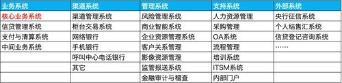 了解银行核心系统的演进历程有助于更好地理解“胖核心”和“瘦核心”的概念,以及银行信息技术系统的现代化趋势。接下来,我们再来看看这张表: