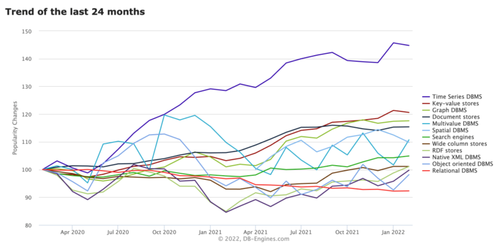 随着大规模数据生产和处理的需求不断增加,时序数据库发展前景十分广阔。在DB-Engines近24个月的流行度报告中,时序数据库力压其他类别的数据库,是增长趋势快的数据库类别。IT168记者对业界专家的采访后,梳理出时序数据库的技术和市场趋势。