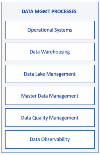 元数据主题和来源还包括用于管理数据库存的数据管理流程。(见图3。)这些包括(但不限于)操作系统、数据仓库、数据湖管理、主数据管理、数据质量管理和数据可观察性的流程。