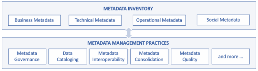 元数据存储是存在许多元数据管理问题的领域。请注意,上面列出的每件事都以复数形式表示-目录、存储库、元数据存储、文件系统、数据库管理系统。这就是元数据孤岛、冗余、不一致和混乱的问题。使用现代数据管理技术,多个元数据存储可能是不可避免的。供应商专有和工具嵌入的元数据、内置于数据准备和分析工具中的数据目录以及定制的元数据解决方案都导致了这个问题。从架构上讲,我们需要考虑元数据互操作性和指定的元数据记录系统概念,例如正式认可的企业数据目录。