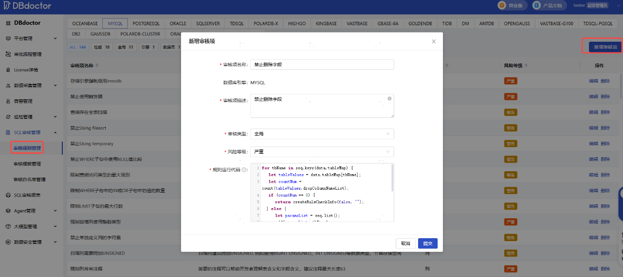 面对企业复杂多变的业务场景,DBdoctor提供了更精细化的审核控制能力: