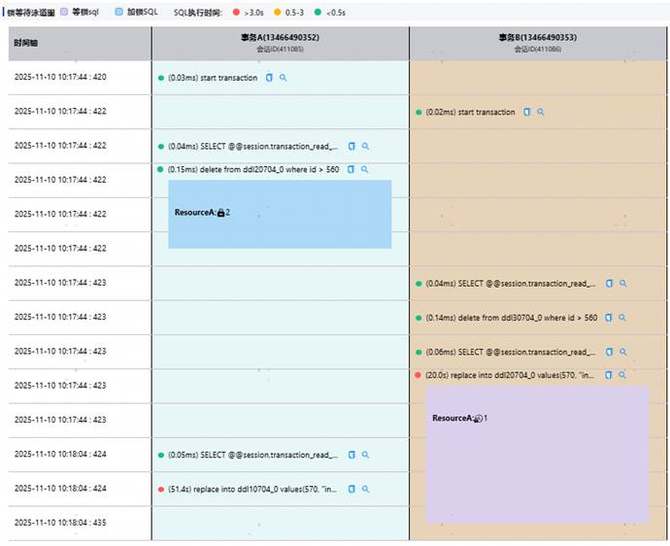 • 锁等待透视:不仅发现锁等待,更能完整展示锁的在数据库内核源码级的形成过程、竞争关系及阻塞链条,精准定位性能卡点
