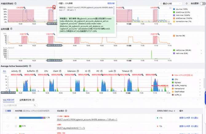 • 决策推荐:不仅指出问题,更能给出具体的优化建议,如“创建某个索引”、“调整某个参数”、“终止某个会话”。