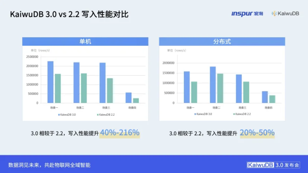 显著的性能指标提升是本次升级最直观的体现。根据陈磊公布的数据,KaiwuDB 3.0的单机写入性能较上一版本(V2.2)提升高达40%至216%,分布式写入性能提升20%至50%。在查询方面,性能平均提升50%,在部分复杂场景下,性能跃升甚至达到600%。这些数字的背后,是应对智能制造、智慧能源等领域中日均TB级数据吞吐的硬核实力。
