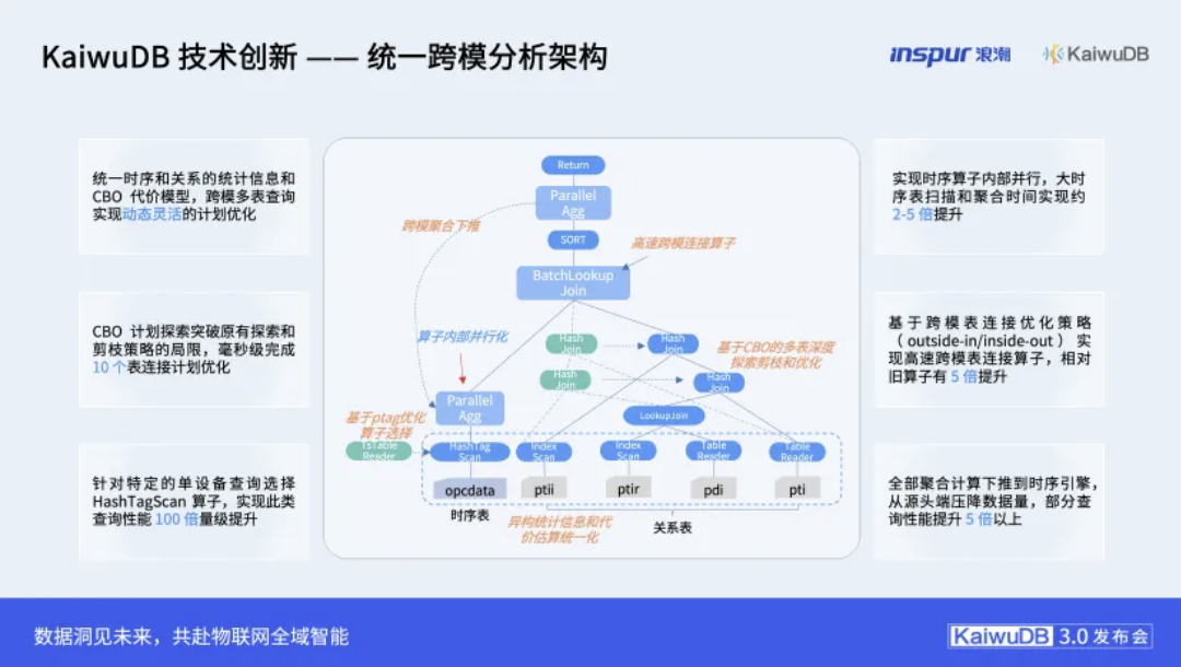 KaiwuDB 3.0增强的“多模一库”能力,正是破解这一难题的利器。它在一个数据库实例内原生统一了时序与关系数据模型,通过增加高效跨模连接算子,时序算子并行处理优化,跨模查询性能提升5-10倍,这标志着其从“能用”到“高效好用”的关键跨越。