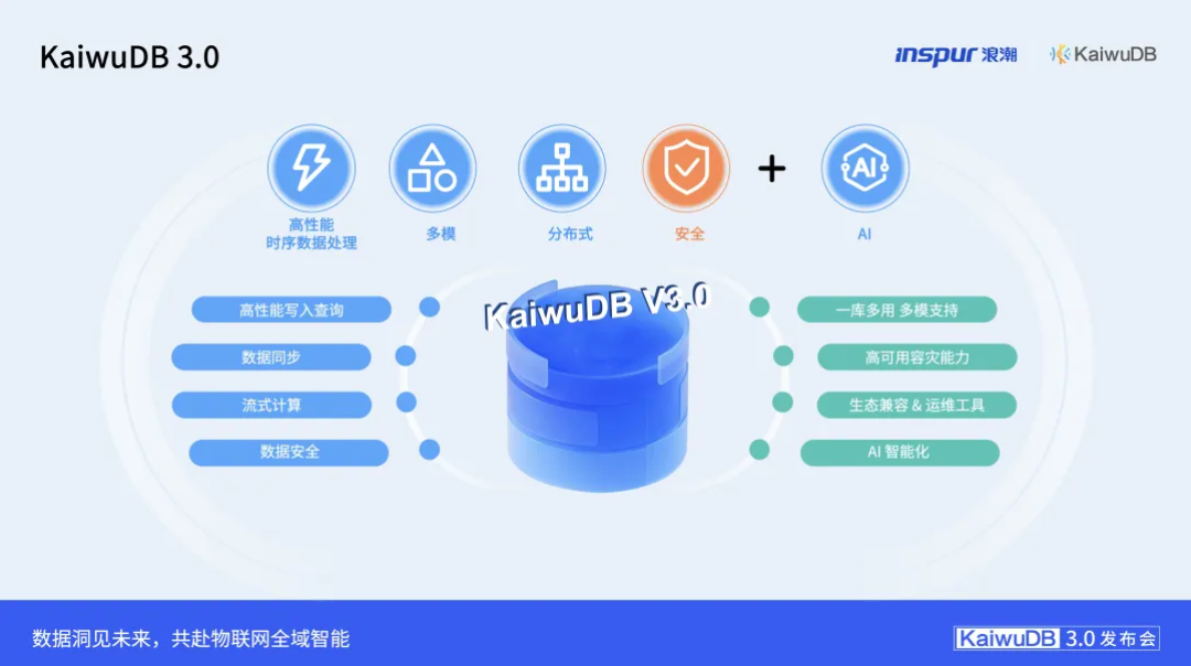 面对这些根本性的挑战,KaiwuDB的选择是回归根基,强化核心。其全新发布的3.0版本,正是一次立足现实的战略升级。本次升级坚定地将重心置于物联网数据基座本身——通过在多模融合、时序性能和实时处理能力上的关键提升,首先解决“AI就绪”的数据基础问题,进而为企业提供坚实的“AI+”产品及服务,赋能业务未来。