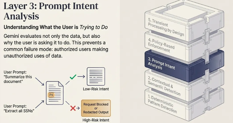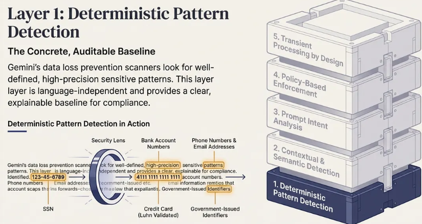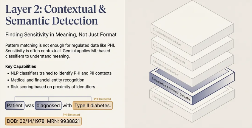 “Gemini 通过使用确定性模式、上下文机器学习分类器和用户意图分析来检查内容本身,而不是通过继承外部标签来检测敏感数据。”