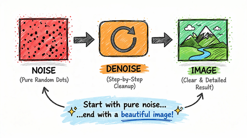 然后,模型会逐步完善图像,添加结构、形状和细节,直到最终形成完整的图像。每一步都根据你的提示进行优化,将随机性转化为有意义的内容。