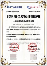 日前,中国信息通信研究院(以下简称"中国信通院")安全研究所公布了SDK安全专项行动的第四期评测结果,MobTech袤博科技的MobPush(版本号:4.2.1)顺利通过评测。