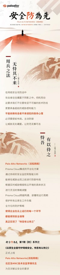 《孙子兵法》深刻阐述了用兵之法,强调“无恃其不来,恃吾有以待之”。这一智慧不仅适用于古代战场,同样在网络安全领域,尤其是云计算安全领域,Palo Alto Networks(派拓网络)Prisma Cloud解决方案,正是这一智慧在云安全领域的生动实践。
