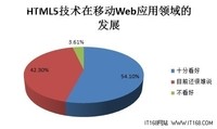 HTML5技术作为新一代的网页技术标准,不仅在PC端获得了用户的一致认可,在移动互联网领域同样深受爱戴参加调查的开发者中,有54.10%%的开发者表示十分看好HTML5技术在移动Web应用领域的发展;有42.30%%的开发者表示目前还很难说,处于一种观望的阶段;只有3.61的开发者表示不看好。