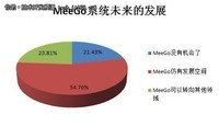 作为具有贵族血统的MeeGo系统,一开始受到开发者的热烈追捧,但是随着MeeGo系统被诺基亚抛弃,一直备受质疑和争议。经过对开发者的调查发现,有54.76%%的开发者始终认为MeeGo仍旧存在发展的空间;有23.81%%的开发者认为MeeGo可以转向其他的领域;