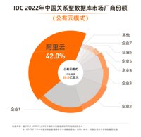 日前,全球领先的IT市场研究和咨询公司IDC发布《2022年下半年中国关系型数据库软件市场跟踪报告》,报告显示,2022全年阿里云市场份额(公有云+本地部署模式)位居第一,其中公有云模式市场份额高达42%%,以绝对优势连续4年蝉联榜首。