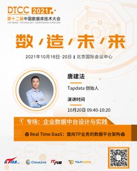 2021第十二届中国数据库技术大会(DTCC)将于2021年10月18-20日,在北京国际会议中心举行,Tapdata 创始人唐建法受邀分享:如何打造面向 TP 业务的数据平台架构。